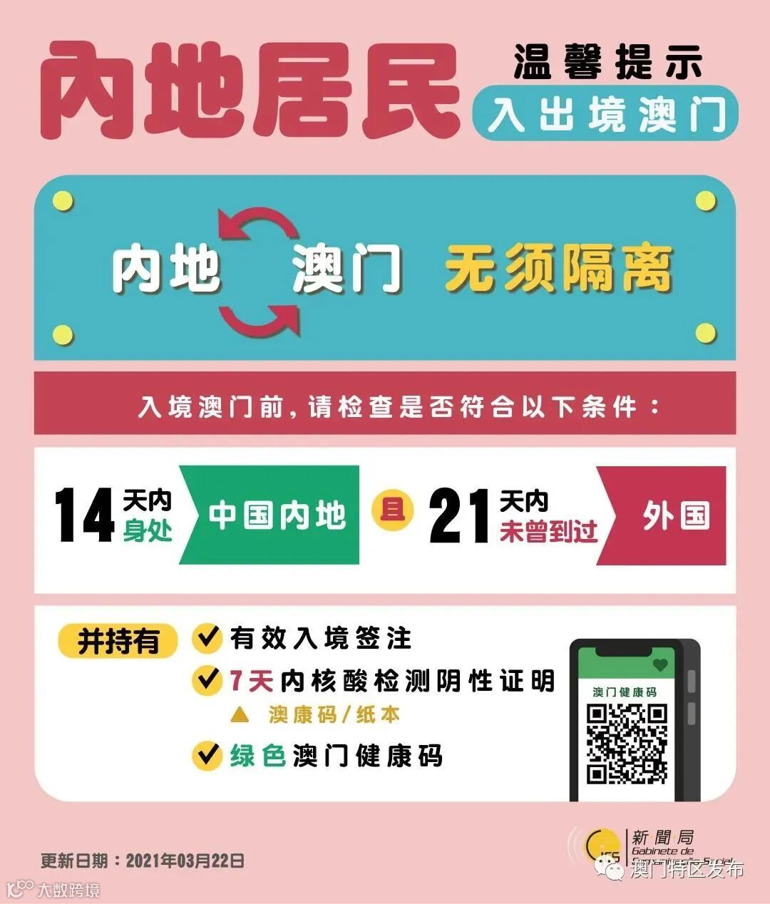 澳门旅游局表示,从数据可见,近期访澳旅客量呈逐渐上升趋势,旅游区人流增加。因应内地与澳门疫情持续稳定,目前所有内地入境澳门人士无须隔离。