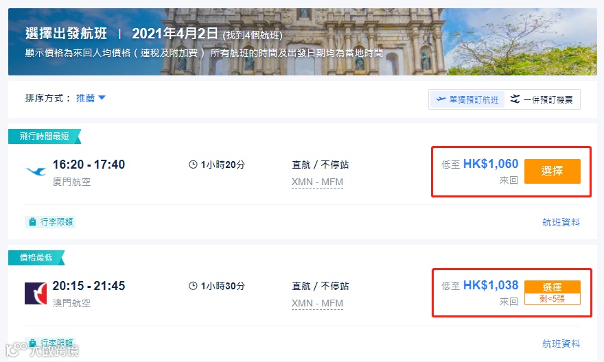 看下往返机票价格,如下图,厦门出发往返只需最低1038港币,折合人民币只需878!是的你没看错!是不是立马想要来一场说走就走的旅行!激动的心,颤抖的手已经按捺不住了吧?!!!