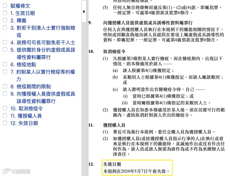 图片来源:《若干到港人士強制检疫规例》截图