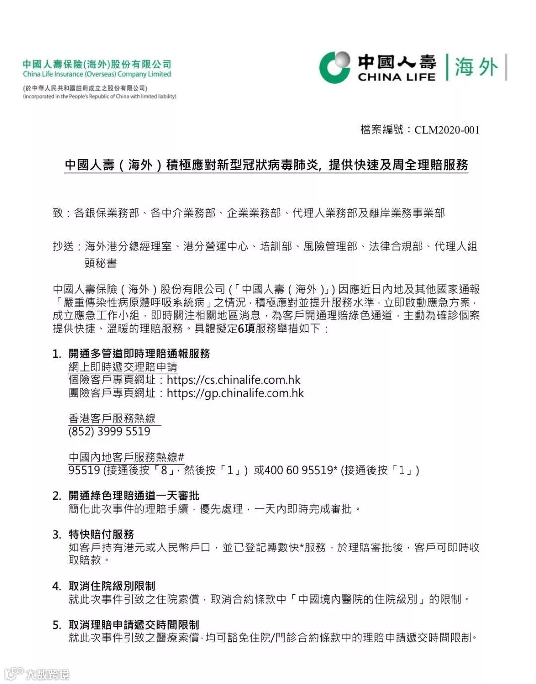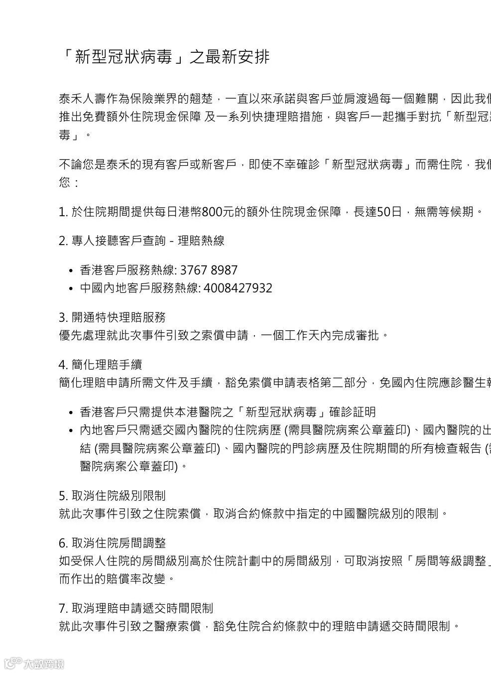 内地与香港各家保险公司反应也非常迅速,推出众多增值服务,履行承诺,切实保障客户。