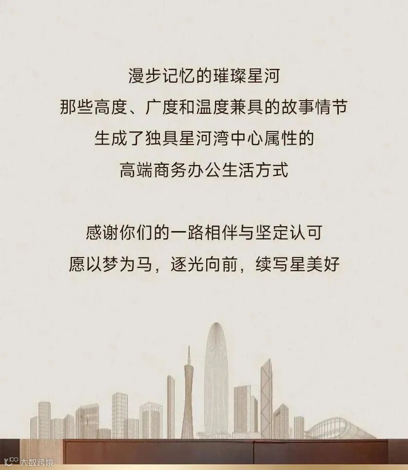 星河湾中心,位于大湾区新经济发展引擎——广州琶洲互联网创新集聚区,是星河湾集团集20多年城市建设、城市大服务及智慧应用经验之大成,以“舍得、用心、创新”价值观打造的首座超甲级写字楼,以东方美学与智慧科技为媒,诠释智能商务新场景。