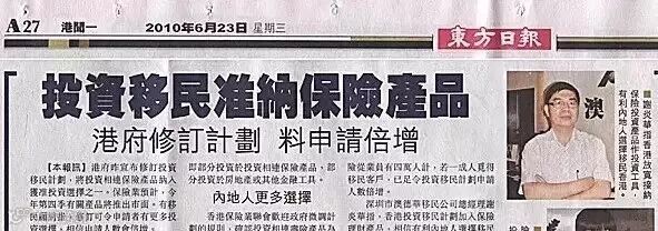 东方日报:投资移民准纳保险产品↓(香港媒体)