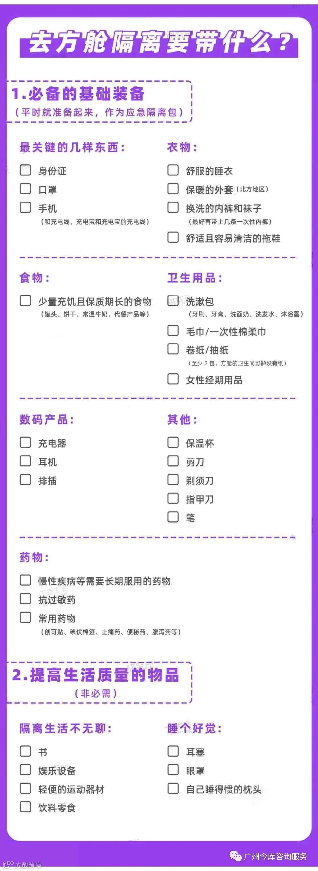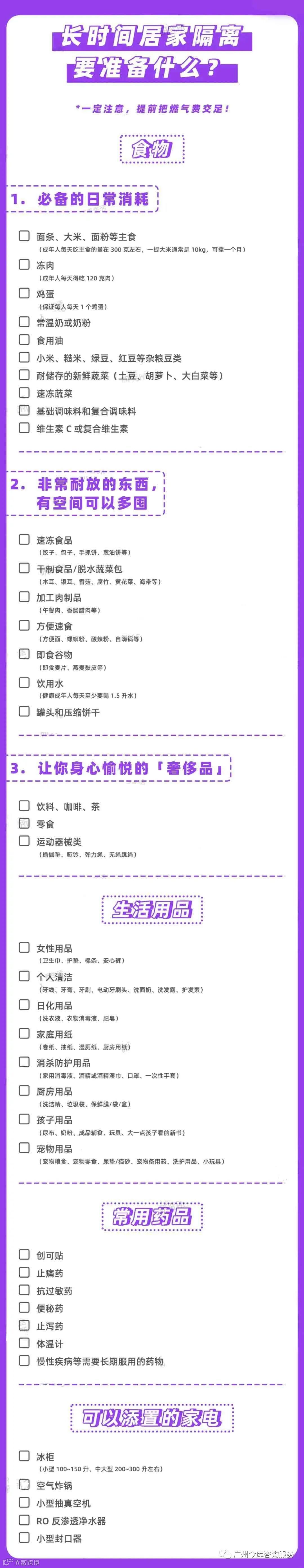 拿好这份隔离必备物品清单↓↓↓