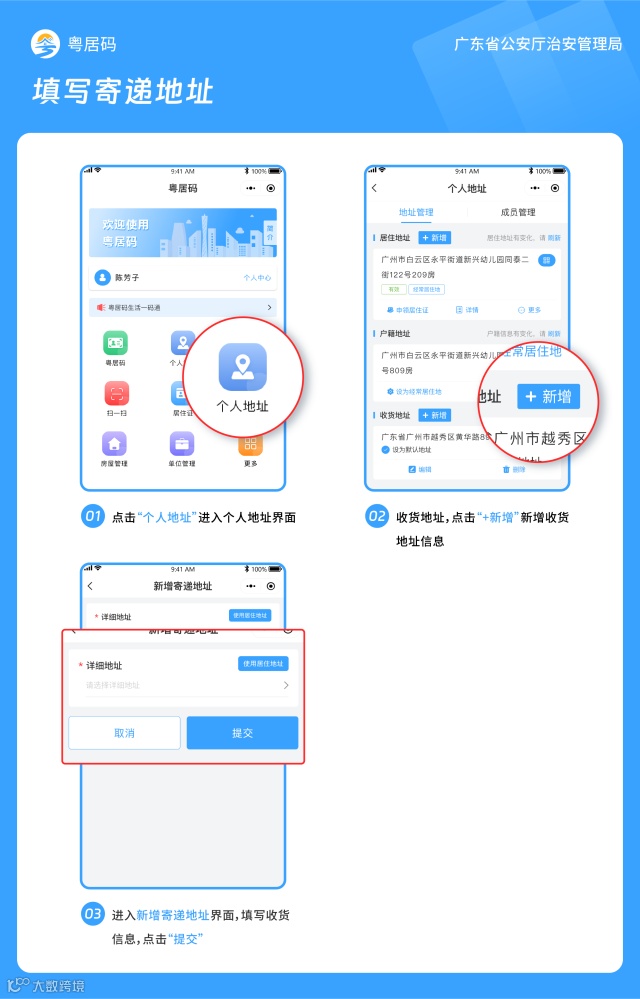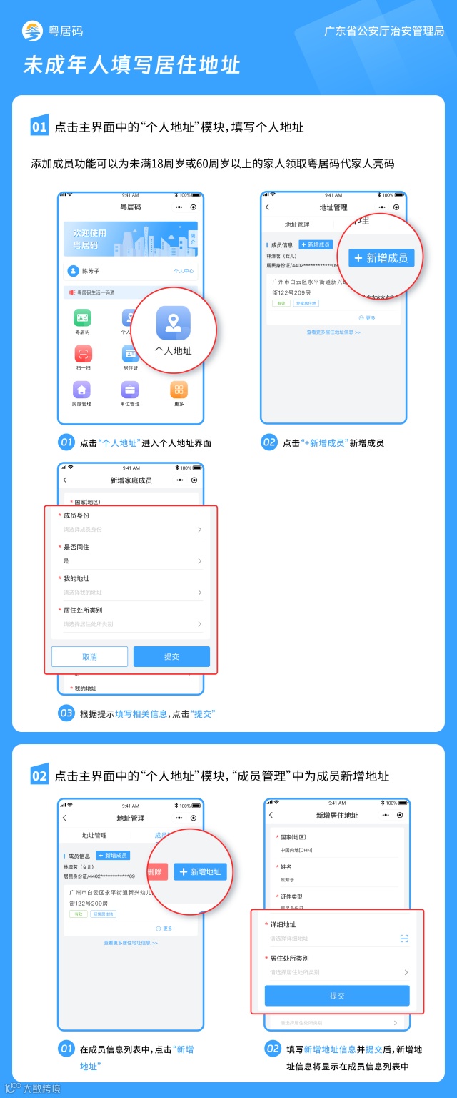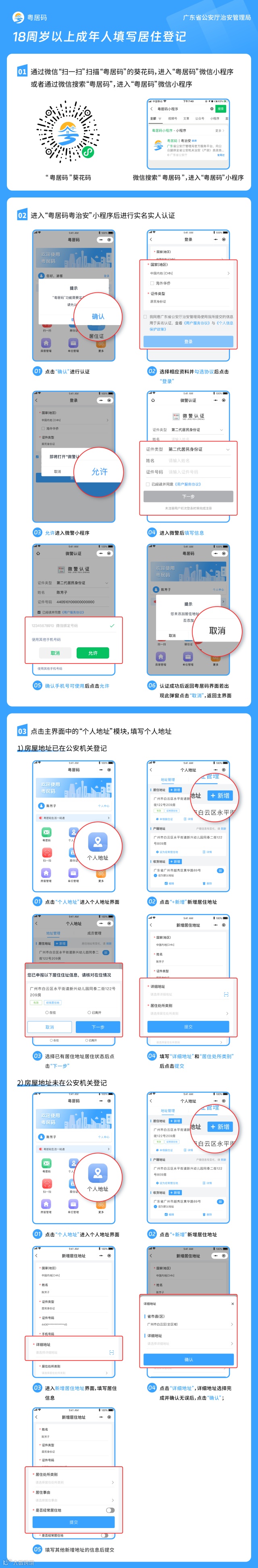 年满16周岁居民首次申领居民身份证,需本人到窗口办理,提交居民户口簿、居住信息、相片回执等材料。警方提醒,居住信息可提前通过“粤居码”微信小程序进行填报,如办理邮寄服务的,也可在“粤居码”微信小程序填报“寄递地址”,无需窗口现场填表。