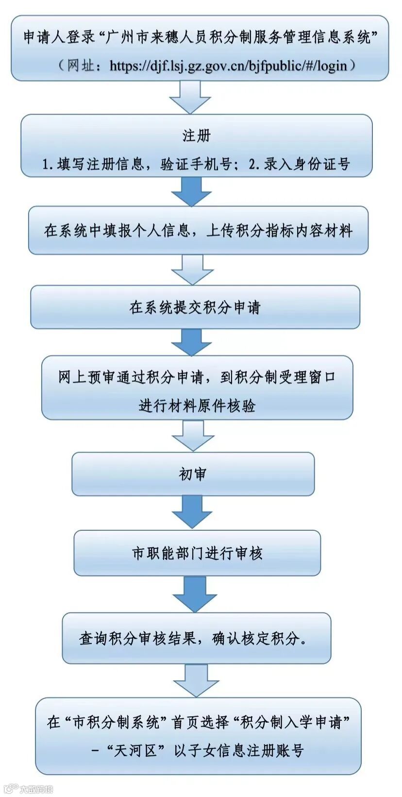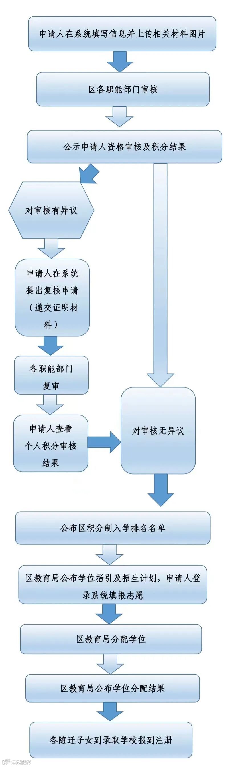 “区积分制入学系统”积分申请流程图