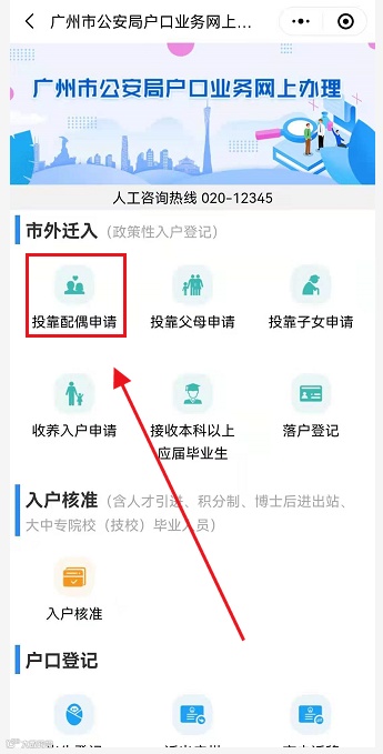 1、提出申请。申请人可通过广州公安微信公众号向被投靠人的户籍地公安机关提交申请。