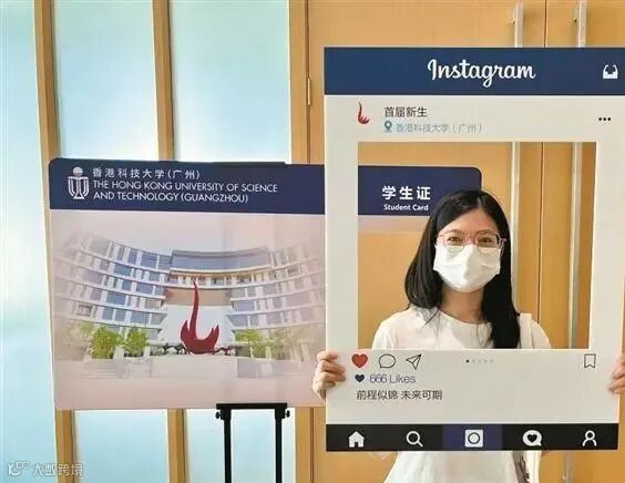 2022年8月20日,是香港科技大学(广州)第一批学生的新生注册日。上午9时许,来自四川德阳的第一位新生肖诗诗前来报到,本科就读于电子科技大学网络工程专业的她表示,选择港科大(广州)是“始于颜值,忠于才华。”入校第一天,同学们纷纷在注册处的打卡点合影留念,写下对港科大(广州)想说的话。