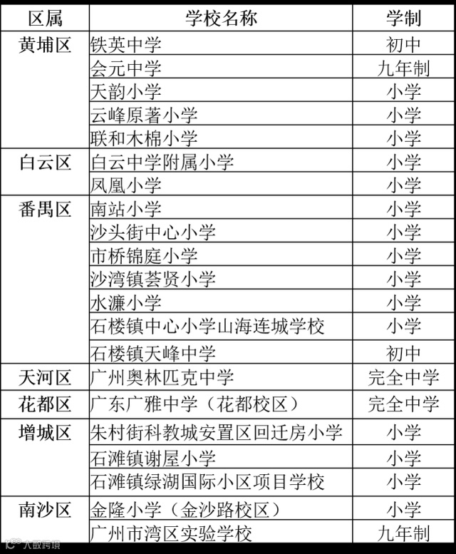 ◆白云区新办2所小学:白云中学附属小学和凤凰小学。