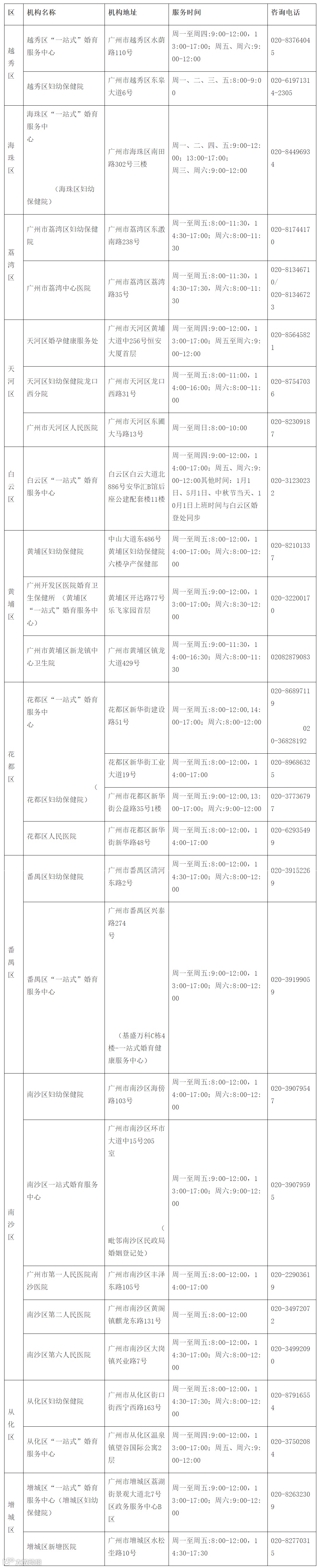 各区免费检查定点机构:各区妇幼保健院、一站式婚育服务中心或各区指定的医疗机构(如下图所示)。