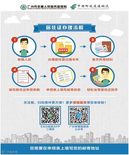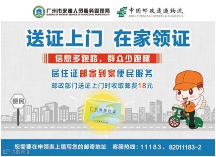 广州市来穗人员服务管理局联合广州邮政EMS,推出居住证邮政速递送达便民服务,减少群众跑动窗口次数,进一步服务广大来穗人员!