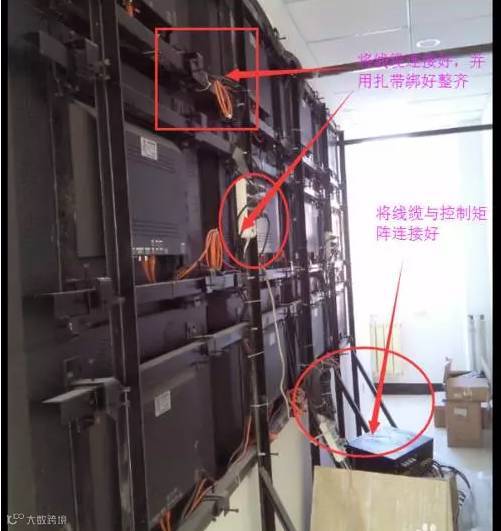 7、全部大屏挂好后,再对整体作一调节,将线缆连接好并规整齐净,连接到控制电脑(RS232串口控制)。
