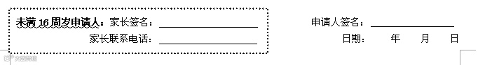 注:未满16周岁的申请人须由家长或监护人签署申请。