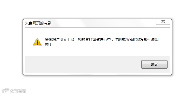 第6步:提交完成后页面会弹出注册成功框,点击“确定”即可完成本次注册。