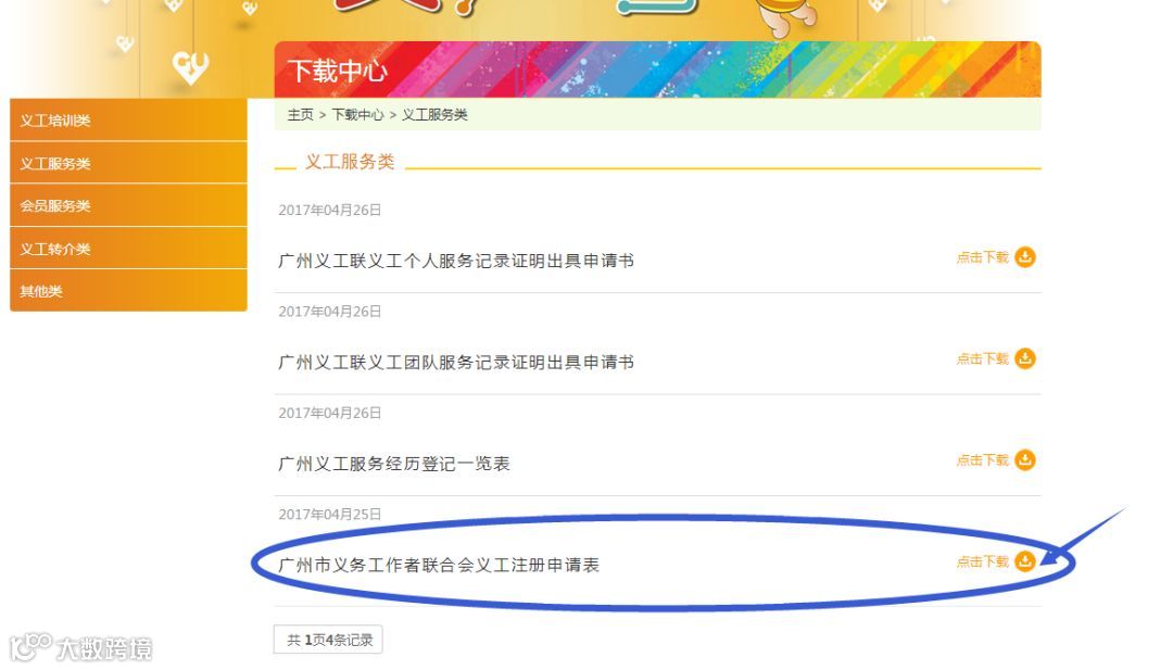 第3步:下载《广州市义务工作者联合会义工注册申请表》。