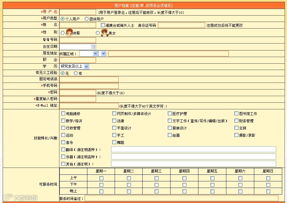 第4步:进入“用户档案”页面,根据要求如实填写个人信息。