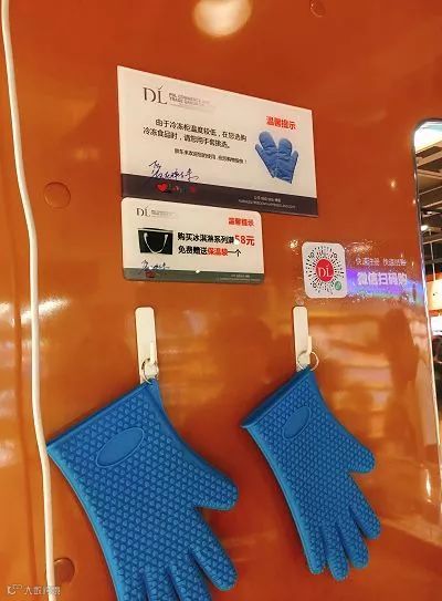 (最让人感到贴心的,还要属这个细节,怕顾客拿东西冷到手,还有保温手套免费提供给顾客)