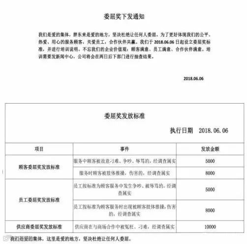 所以,从今年6月起,胖东来就设置了员工委屈奖,凡是在正常工作中受到顾客、供货商辱骂、侮辱的员工,一经核实属实,就可以拿到至少5000元委屈奖励,员工受的委屈企业来买单。