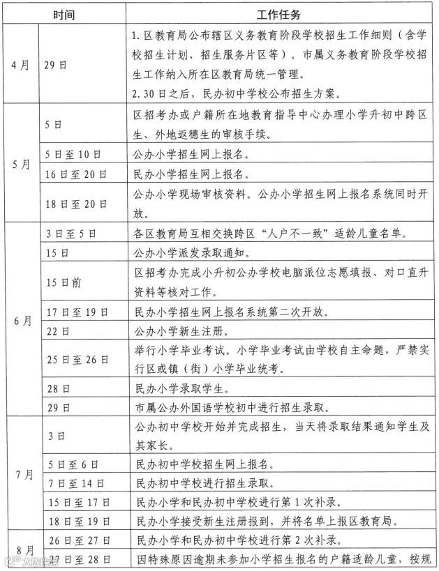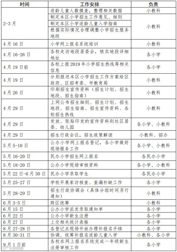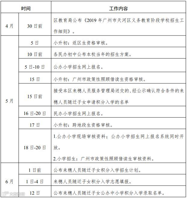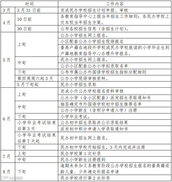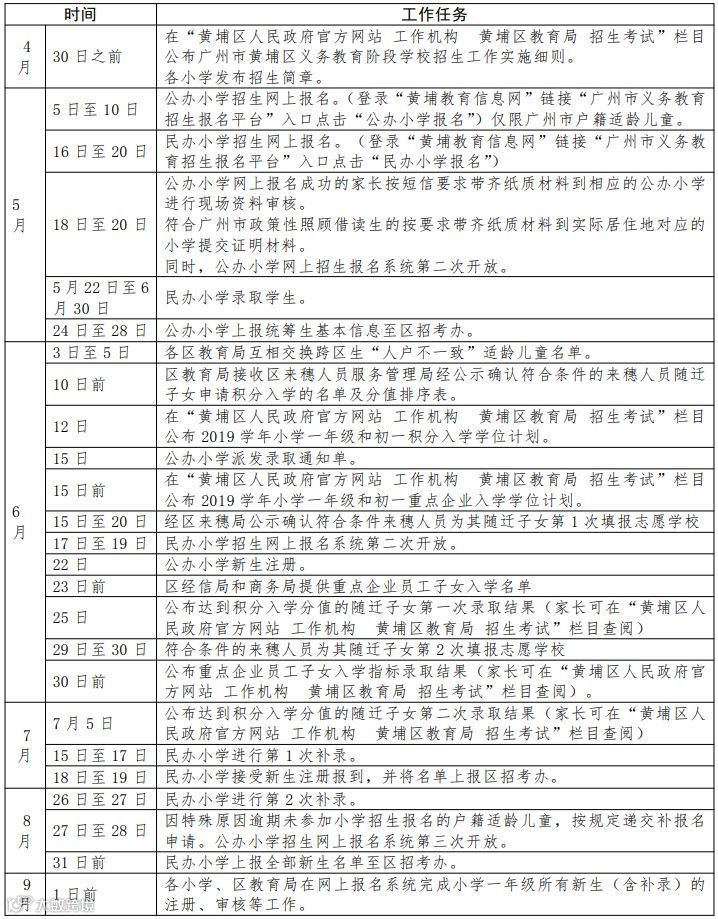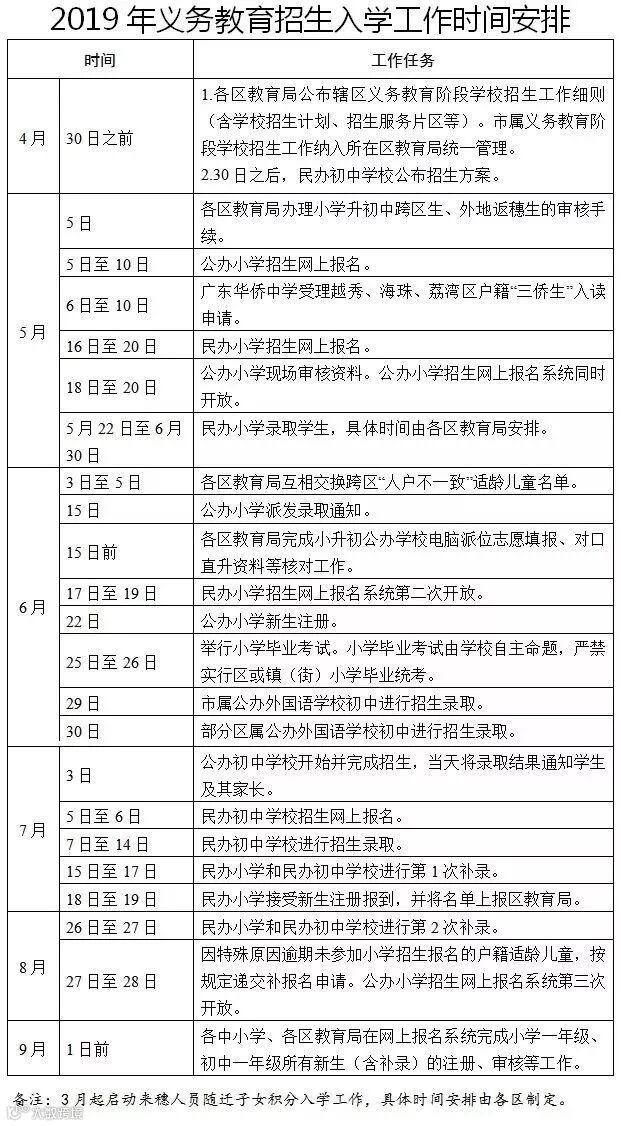 越秀、海珠、从化三区没有公布具体的招生入学时间表,大家可参考下面这个2019年义务教育招生入学工作时间安排表