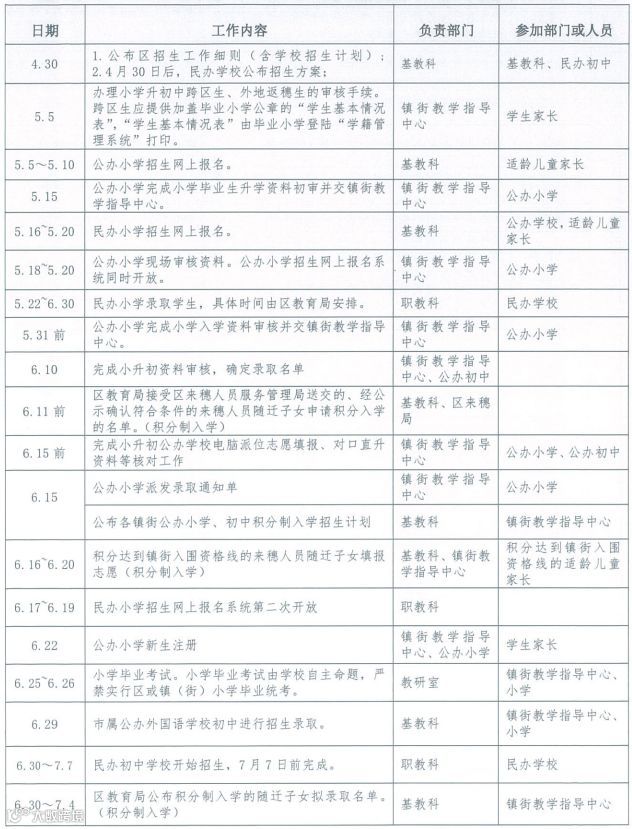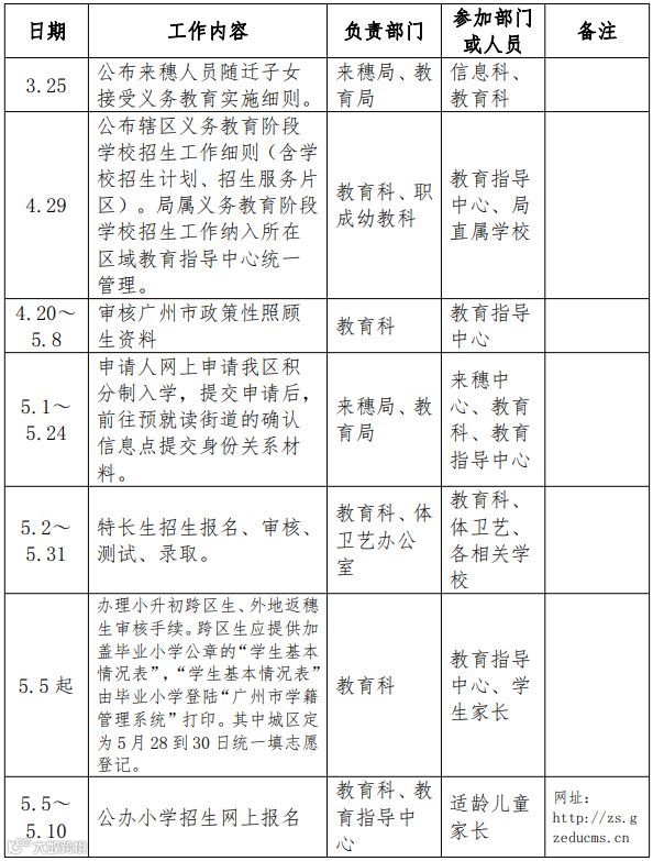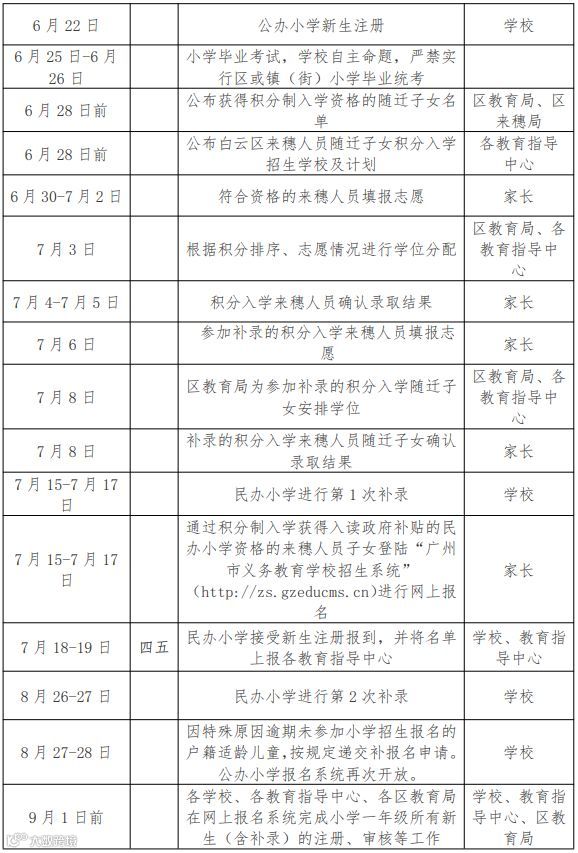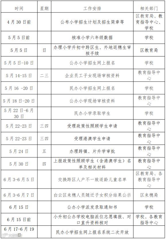 备注:积分入学时间如有调整,请以后期公布的《白云区来穗人员随迁子女积分制入学工作时间安排表》