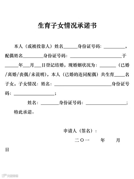 ▲ 《生育子女情况承诺书》样式