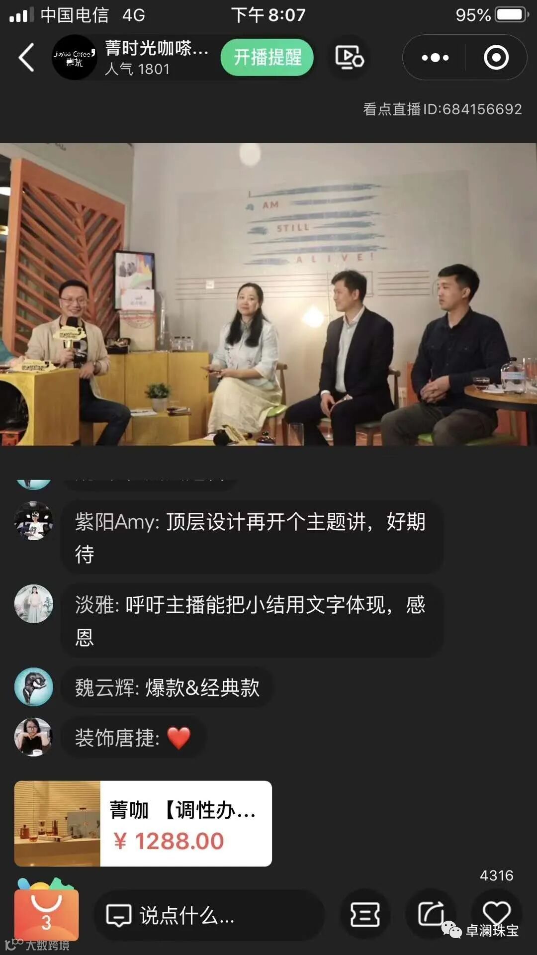 ,卓澜珠宝董事总经理贾环宁女士受邀坐客此次公益直播。此次直播主题是《感知时代的产品塑造》,卓澜珠宝作为感知时代美学与设计领域的代表企业,分享产品塑造的价值和经验。直播由上市公司世龙实业(002784)刘宜云董事长带队,大咖齐聚。由原定2个小时的直播,因为线上观看的企业家互动热烈,延长到4个小时,先后累计吸引1801位 企业家精英人群同步观看,有深度、有干货、有收获。直播后,与会直播大咖还自发分享了直播笔记。