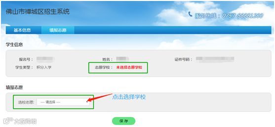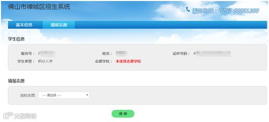 进入填报志愿栏选择志愿学校,选择志愿学校后,必须点击“保存”,最终志愿学校以学生信息栏目红字显示的志愿学校为准。