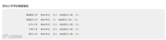 3.请家长根据学校学位情况以及个人积分排名选择一所志愿学校,志愿学校排位未达到该校学位数以内的,不予录取;