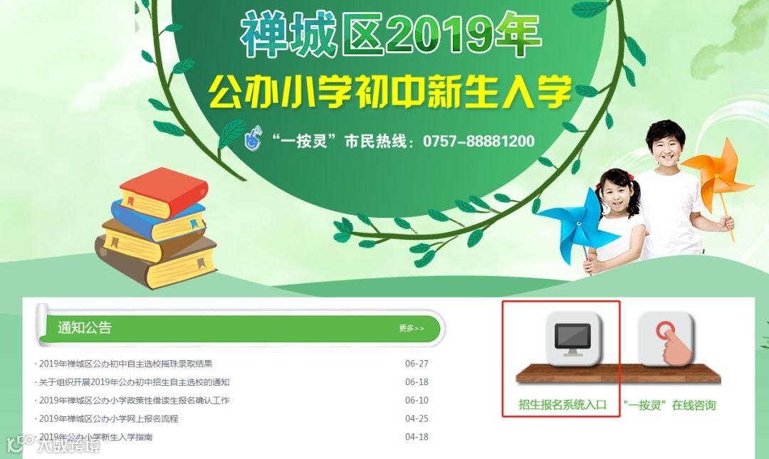 (http://www.chancheng.gov.cn/)点击进入禅城区2019年公办小学初中新生入学专栏。