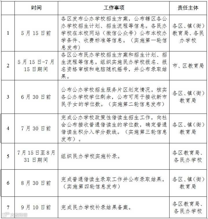 佛山市义务教育学校招生工作日程安排