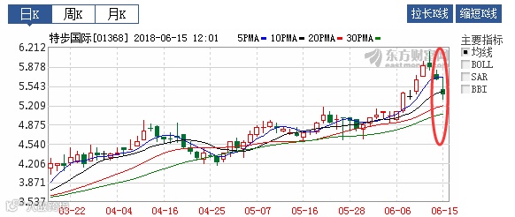 “同呼吸,共命运”的还有特步国际(01368,HK),14日大跌3.75%后,截至15日午间收盘,股价再度下跌4.42%,报5.4港元。
