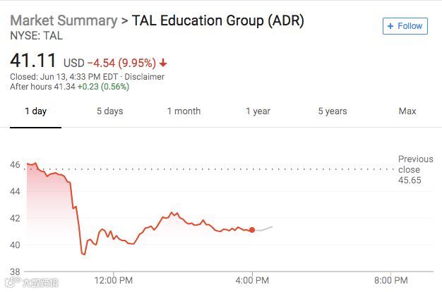 受此影响,当地时间13日美股开盘后,好未来股价一度跌逾13%,截至当日收盘,报41.11美元/股,股价跌9.95%,市值蒸发22.4亿美元。按最新汇率计算,相当于一天市值蒸发143亿元人民币。