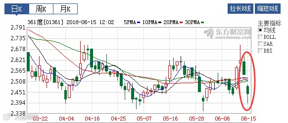 还有361度(01361,HK),14日大跌3.75%后,截至15日午间收盘,股价再度下跌4.33%,报2.43港元。。
