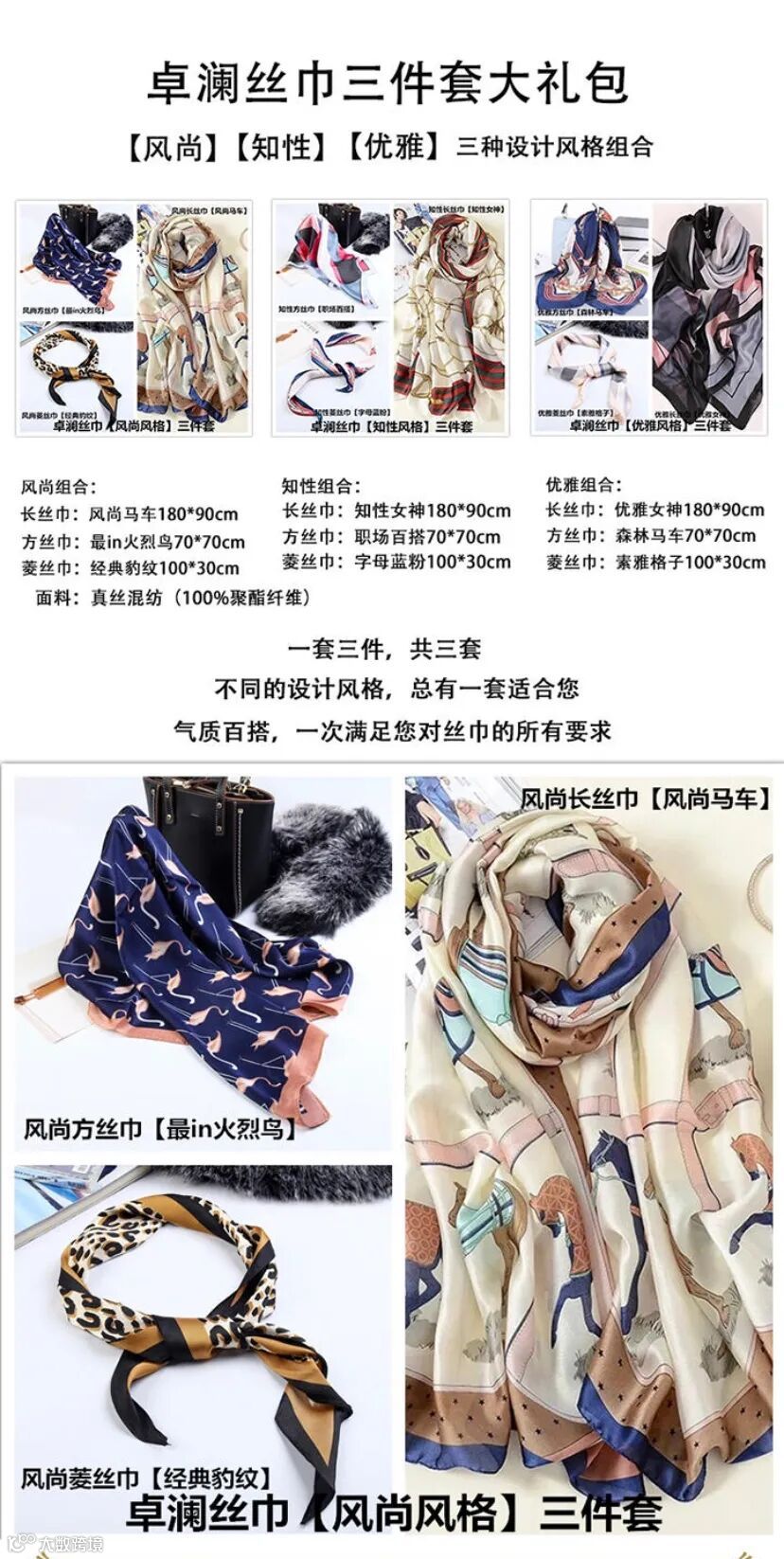 卓澜珠宝大牌时尚设计【知性】【风尚】【优雅】组合丝巾三件套 高档礼品