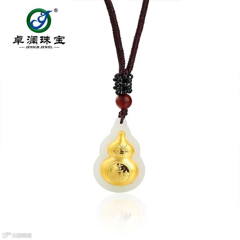 24K足金镶嵌天然和田白玉,精工镶嵌,温润可人,吉祥如意宝葫芦代表着神圣,祝福美好