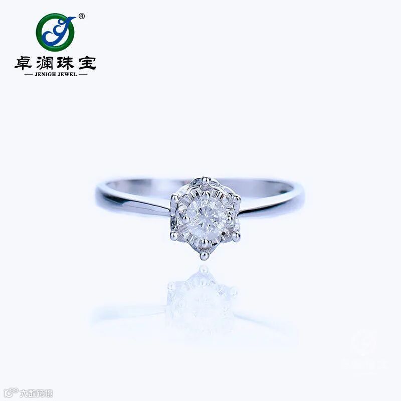卓澜珠宝半克拉效果卓澜专利款30D色VVS净度莫桑钻戒银镀白金戒托