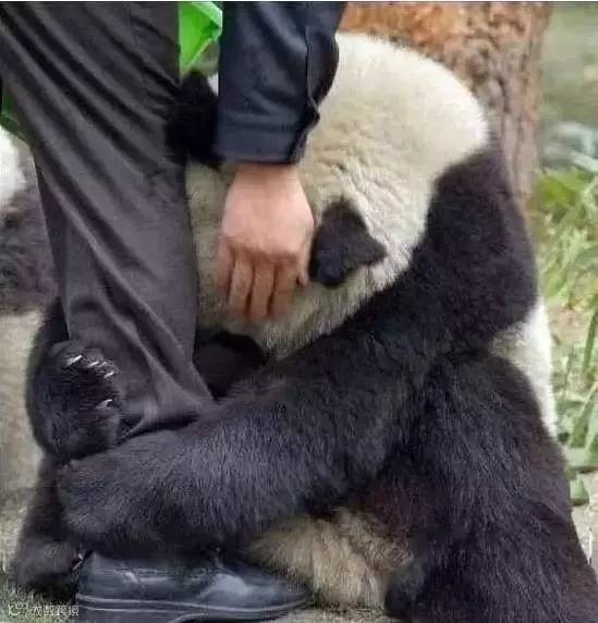 汶川地震后,大熊猫看到前来救援的工作人员,抱着他的腿久久地不愿松开,生怕他离开。