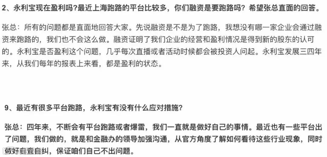 在6月26日与投资人线上沟通的过程中,其CEO张玉丰还解释称,“融资不是为了跑路,永利宝发展三四年来,都是盈利的状态。”