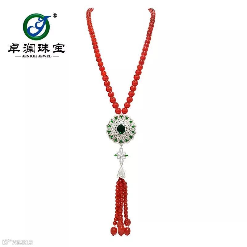 而另一款卓澜天然红玉髓晚装链,则体现了卓澜端庄典雅的设计风格。选用天然顶级红玉髓,饰以花团锦簇的设计。给人一种典雅端庄的美感。和古典美人更配哦!