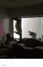 惠州大亚湾一住宅小区住户的客厅阳台玻璃门被台风吹烂,家中一人欲去处理时,被玻璃割伤脚部,不能走动。