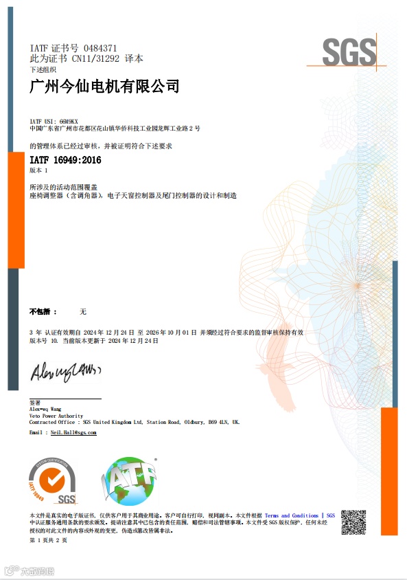 广州今仙电机有限公司成立于2001年广州市花都区,专业从事车辆座椅核心机构件的研发、生产、销售及服务,具有设计研发产品及模具和夹具开发能力,加工制造(冲压、涂装、焊接、组装)车用调角器、滑轨、座椅电机、座椅骨架、备用电源等。