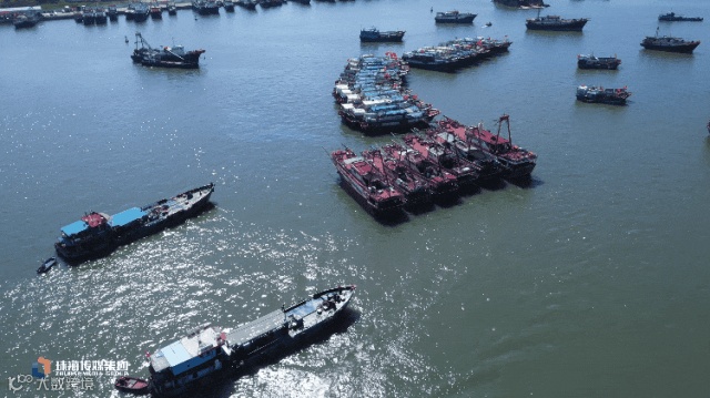 随着一声令下,港池内的百余艘船只一齐鸣响了发船的汽笛。一时间,千帆竞发,百舸争流,原本平静的海面被无数渔船的螺旋桨搅动得波涛汹涌。港池内的所有渔船浩浩荡荡朝着南海的方向扬帆起航、破浪而行。