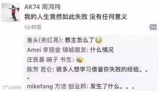 最近,就在360上市满月,身价千亿的红衣大炮周鸿祎,也感叹人生失败:家庭事业难平衡,个人生活一团糟