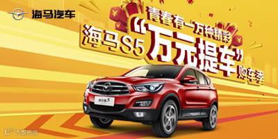 在为初出茅庐“囊中羞涩”而苦恼吗?还在为无法带着“心爱女神”兜风而沮丧么?什么?存款买房没钱买车?海马汽车告诉你,“海马万元提车”,帮你解决钱不够的烦恼,一万元就把车开走,多一分都不需要。这都不叫事儿!海马汽车“万元提车”活动已覆盖海马S5全系车型!只需首付1万元,海马汽车开回家。如果觉得首付“1万元”还不够爽?没关系!购置税、保险、GPS安装费也可一同分期,全面降低购车门槛,买车就是那么痛快!还等什么?赶快买辆海马S5,带上你心爱的姑娘开启幸福生活吧!