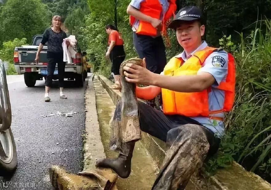 去年6月,贵州印江突降暴雨,城区多处积水,造成交通阻塞,全县各交通路线因暴雨造成不同程度受损,通往各乡镇的县道受降雨影响多处实行交通管制,印江交警大队立即启动汛期应急预案,前往各交通要道进行道路隐患排查并实施相应措施。在一线,他们赤脚上阵: