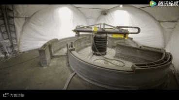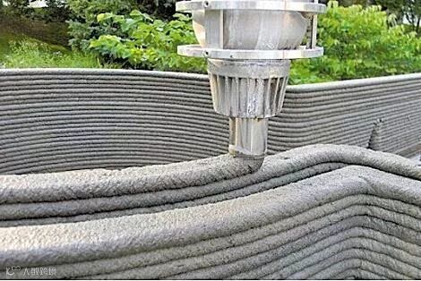 利用机器一层一层建筑,逐渐形成一个坚固的立体物。