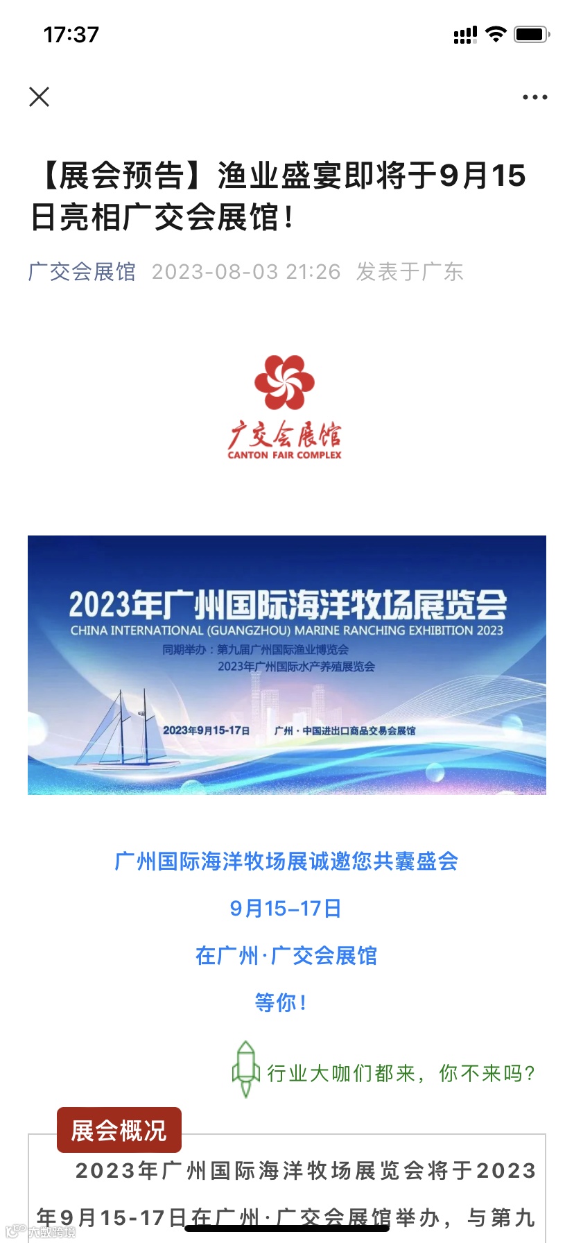 广州国际渔业博览会拥有十年品牌见证,是粤港澳大湾区高规模、高品质的国际化、专业化渔业博览会,亦是广交会展馆唯一官宣的专题渔博会。展会将集中展商各类水产品,冷藏冷链设备,养殖动保及加工,水产品预制菜等全产业链上下游,为国内外水产人、供应商企业提供一个信息传播、技术交流和经贸洽谈的优质交流平台。