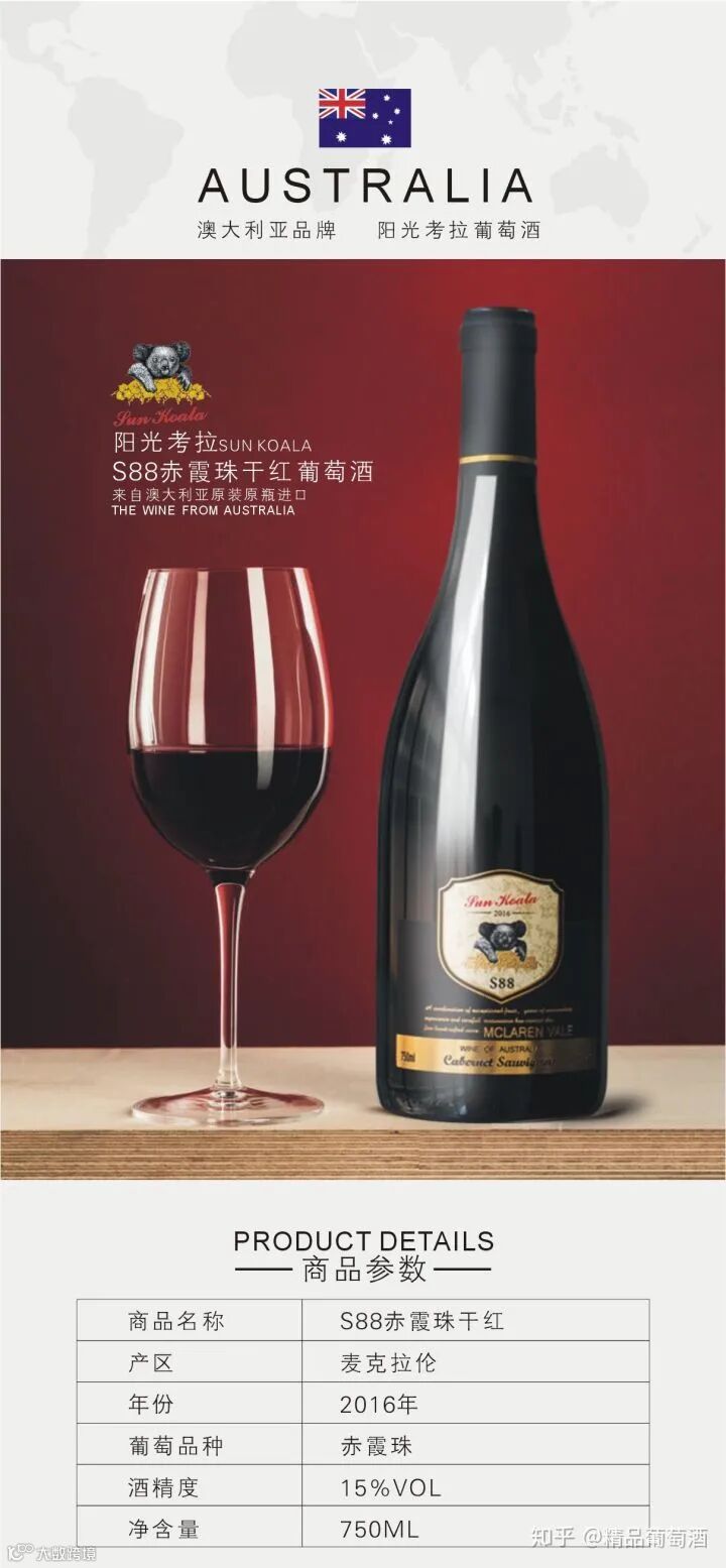 麦克拉伦谷肥沃的土壤,适宜的气候和充足的水源使其能够生产出味道醇厚的红葡萄酒。以其专注于葡萄酒酿造的可持续发展而著称,澳洲阳光考拉S88赤霞珠干红葡萄酒,这款赤霞珠给我们的第一印象是丰富而有深度,精选麦克拉伦谷优质葡萄酿造而成,酒精度15.0% alc/vol,12个月法国橡木桶熟成,酒液呈现深红色,香气浓郁,带有活泼的黑色浆果还有一丝美味的月桂叶的香气。单宁雄壮,带有微妙的橡木香气,回味悠长。口感令人赞不绝口、心神向往。进一步的探索显示出多层烤橡木和一些黑巧克力的味道,以及愉快的薄荷和黑醋栗,这款酒口感绵长。