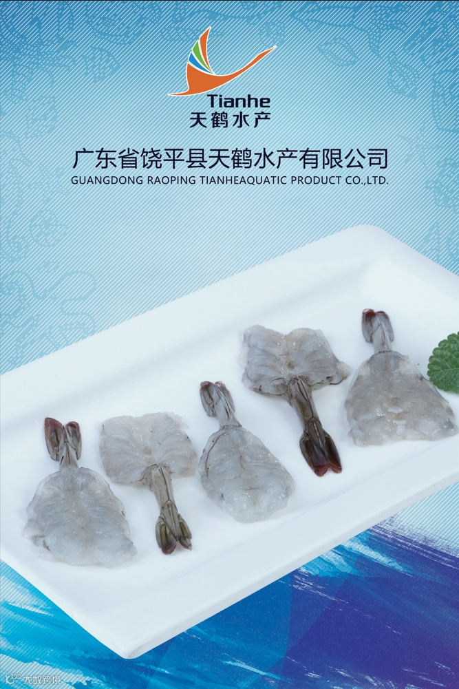 天鹤水产有限公司坐落于水资源丰富的广东省饶平县汫洲镇,位于青山后工业区,北接324国道,交通十分便捷。公司创立于2011年,注册资金5千万元,占地面积20亩。公司现拥有精深加工车间和多条精深、熟制、干水产品加工生产线,以及储量为20000m的冷藏库2座,目前在职员工达800余人,公司主营产品:虾类产品。