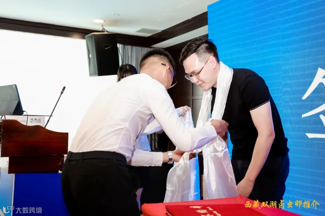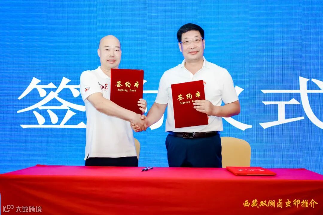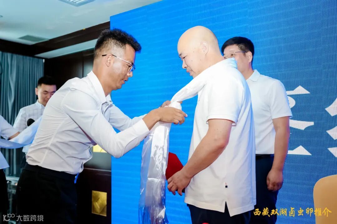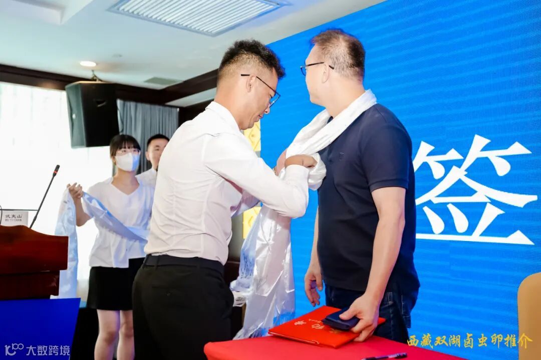 现场,广东梁氏水产种业有限公司、广东何氏水产有限公司与新疆阳光玺越生物制品有限公司签订认购协议书;台灣宸禎生物股份有限公司、宁德市海林农业综合开发有限公司、博艾丰生物制品股份有限公司、湛江腾飞实业有限公司分别和西藏双湖县普若岗日生物科技有限公司签订购销合同,合计签约200吨!为了表达藏族同胞对嘉宾的感谢,藏族代表在现场向签约嘉宾献上最洁白的哈达,扎西德勒!