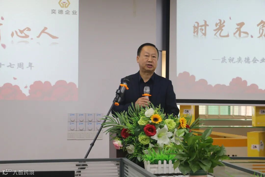 一、总经理吴树文做十七周年庆典致词—“时 光 不 负 有 心 人”,他说到“回顾奕德企业走过的十七年历程,我们走过弯路,经历过曲折,始终不变的是企业未来的方向—“追求全体员工物质和精神双重幸福,为社会发展贡献企业价值”。今天,企业发展已经走到了关键的十字路口,所有奕德人更要勠力同心、聚焦目标。